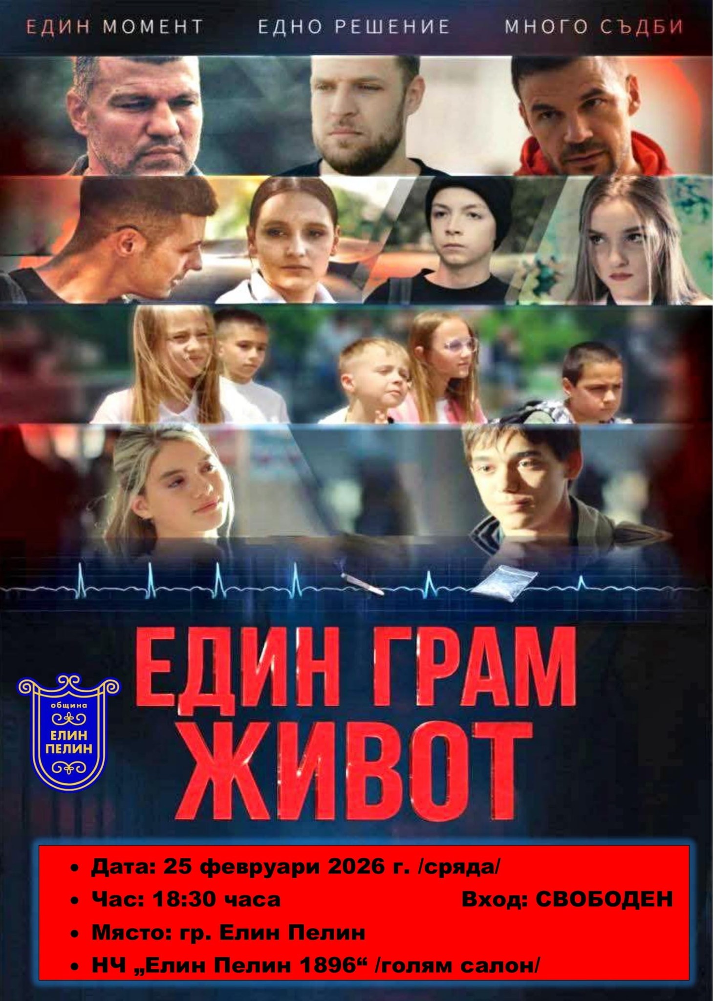 МКБППМН към Община Елин Пелин с безплатна прожекция на новия български филм „Един грам живот“, който е вдъхновен от действителни събития
