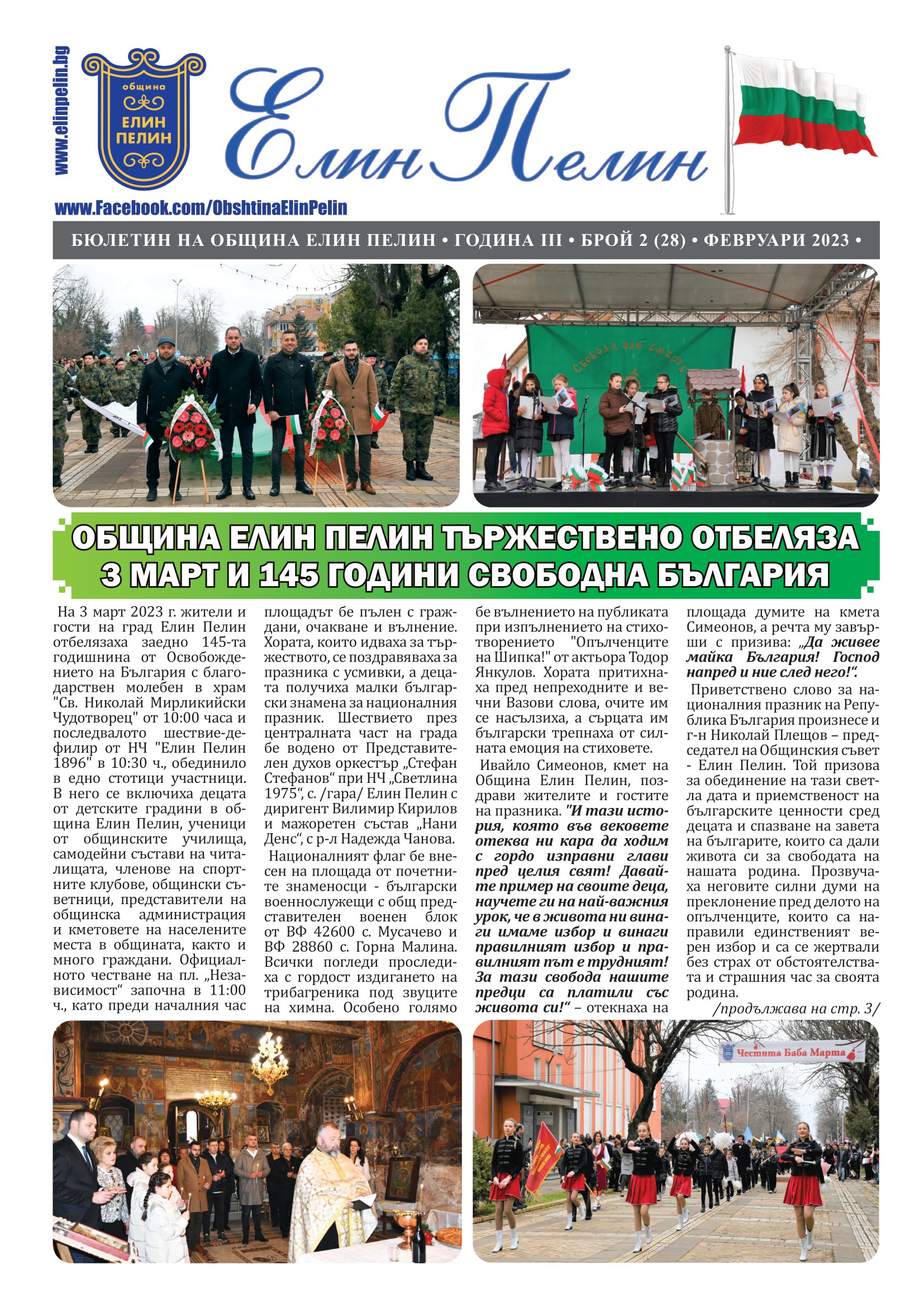 Брой 02/2023 г. на новия информационен бюлетин с избрани новини и събития от Община Елин Пелин, който се издава на месечна база.