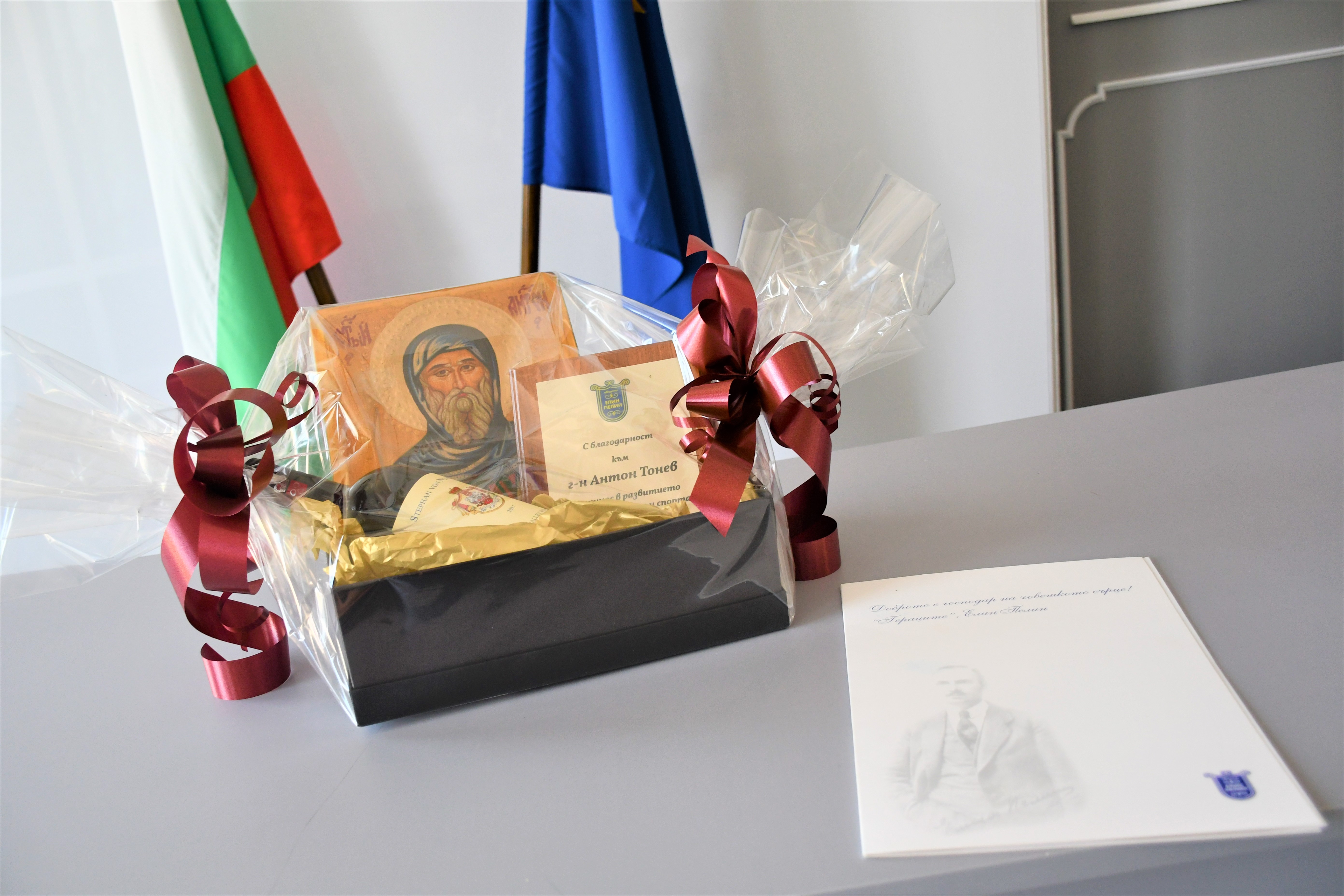 В знак на признателност и уважение на г-н Тонев бе връчен благодарствен плакет с пожелание за здраве, щастие и дълголетие. Господин Симеонов му благодари за всичко онова, което е оставил през целия си житейски и професионален път на младите хора, както и за грижите, обичта и всеотдайността, които с пълни шепи е раздавал на децата на Елин Пелин.